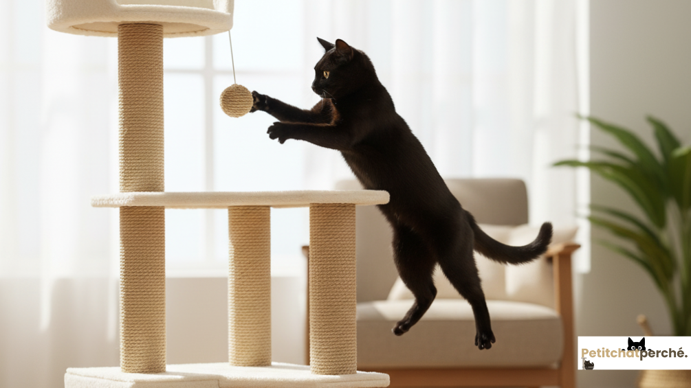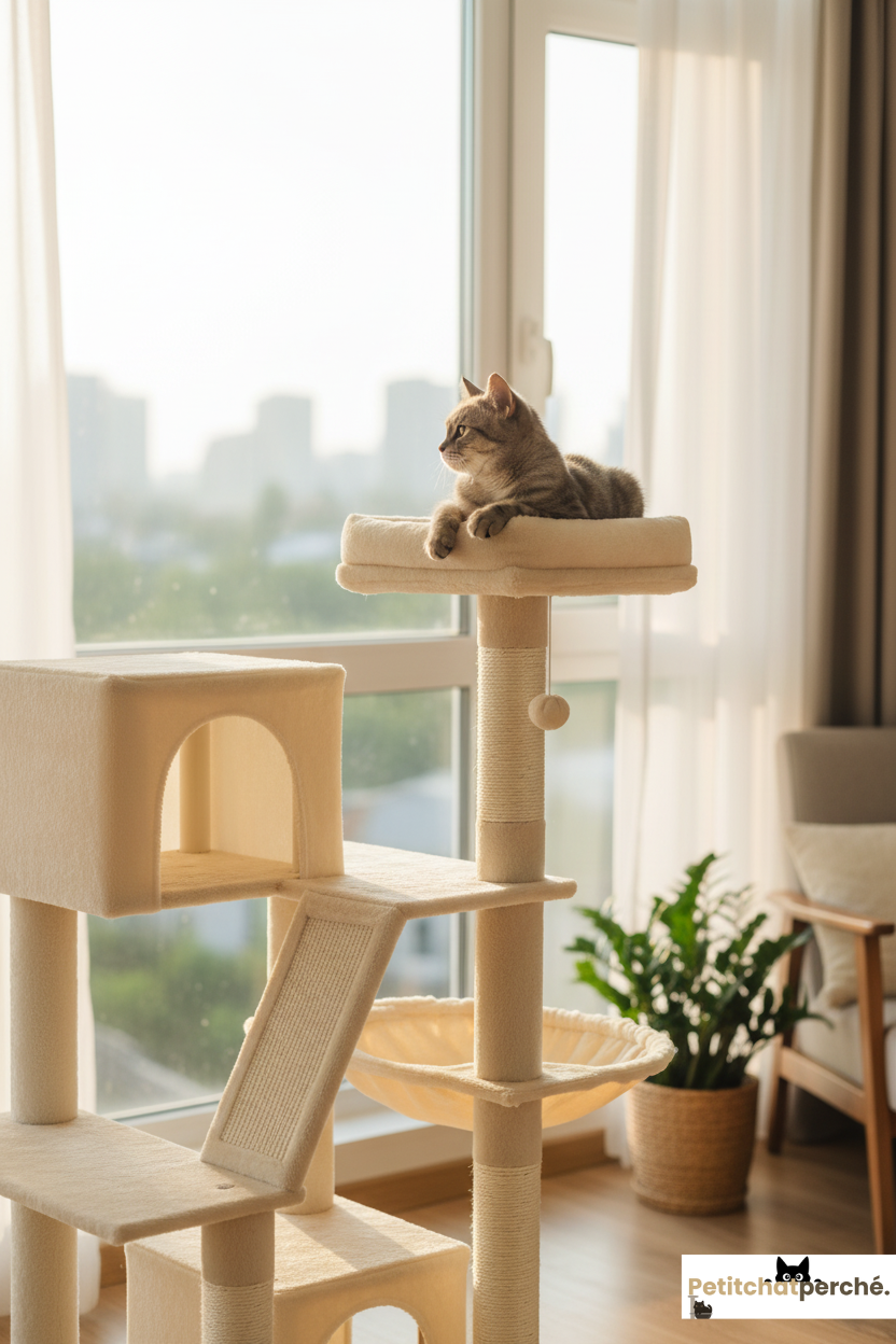 Petitchat'perché est la boutique spécialisée dans les arbres à chat conçus pour le repos et le jeu de votre compagnon